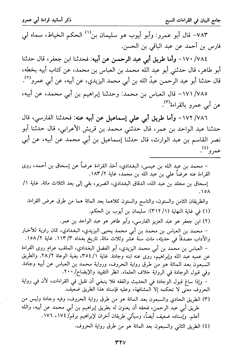 784/ 170 - وأما طريق أبي عبد الرحمن عن أبيه: فحدثنا ابن جعفر، قال حدثنا أبو طاهر، قال حدثني أبو عبد الله محمد بن العباس بن محمد، عن كتاب أبيه بخطه، قال حدثنا أبو عبد الرحمن عبد الله بن أبي محمد اليزيدي، عن أبيه، عن أبي عمرو «2».