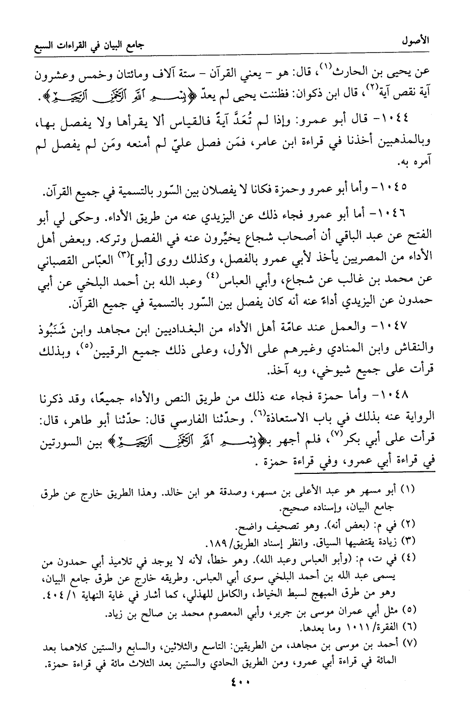 1045 - وأما أبو عمرو وحمزة فكانا لا يفصلان بين السّور بالتسمية في جميع القرآن.