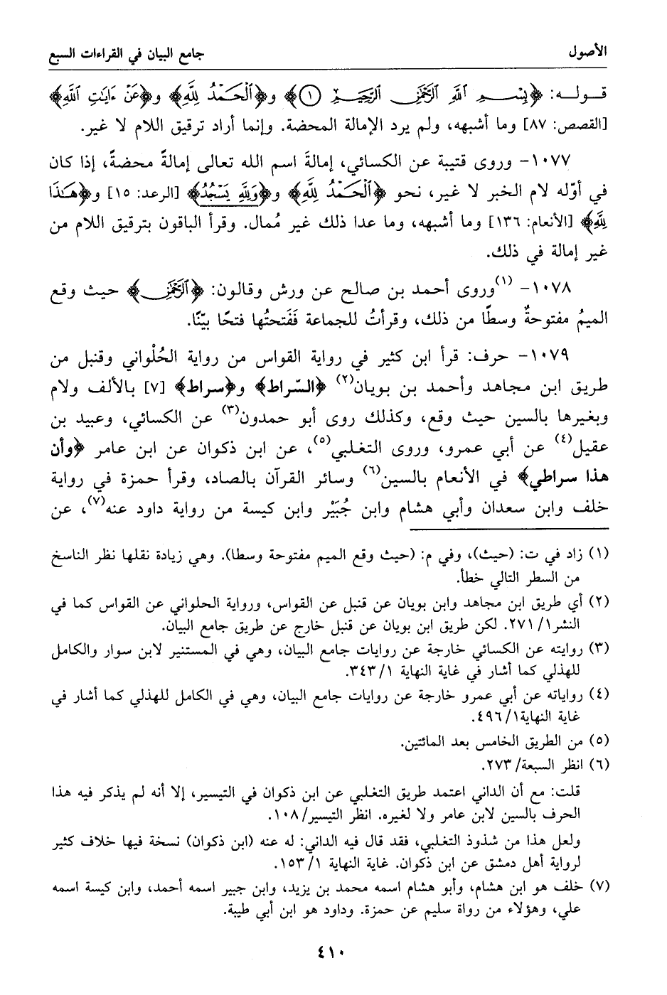 (7) خلف هو ابن هشام، وأبو هشام اسمه محمد بن يزيد، وابن جبير اسمه أحمد، وابن كيسة اسمه علي، وهؤلاء من رواة سليم عن حمزة. وداود هو ابن أبي طيبة.