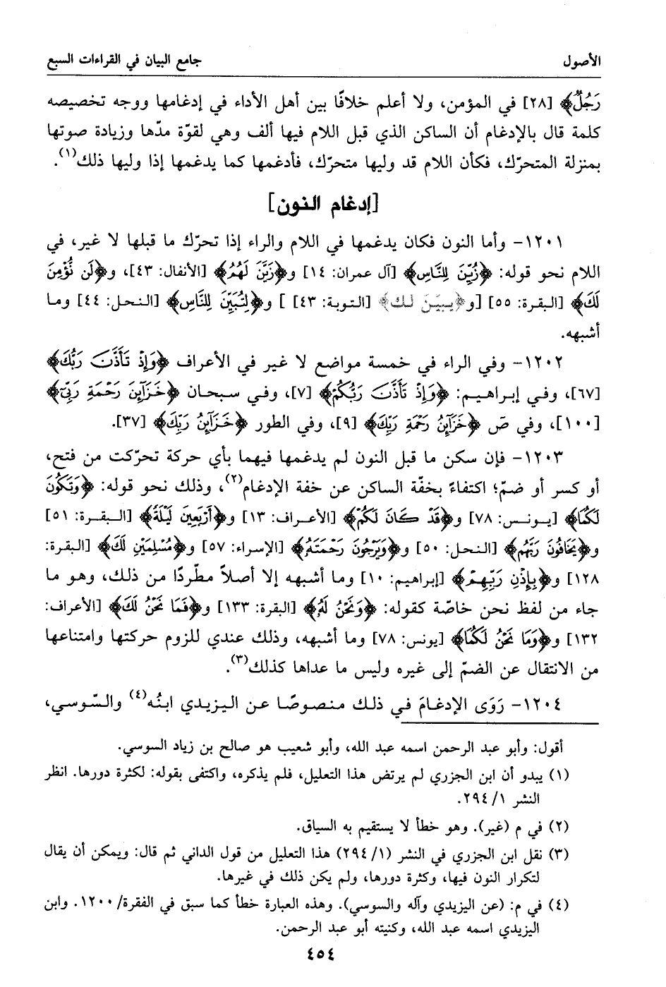 1204 - روى الإدغام في ذلك منصوصا عن اليزيدي ابنه «4» والسّوسي،