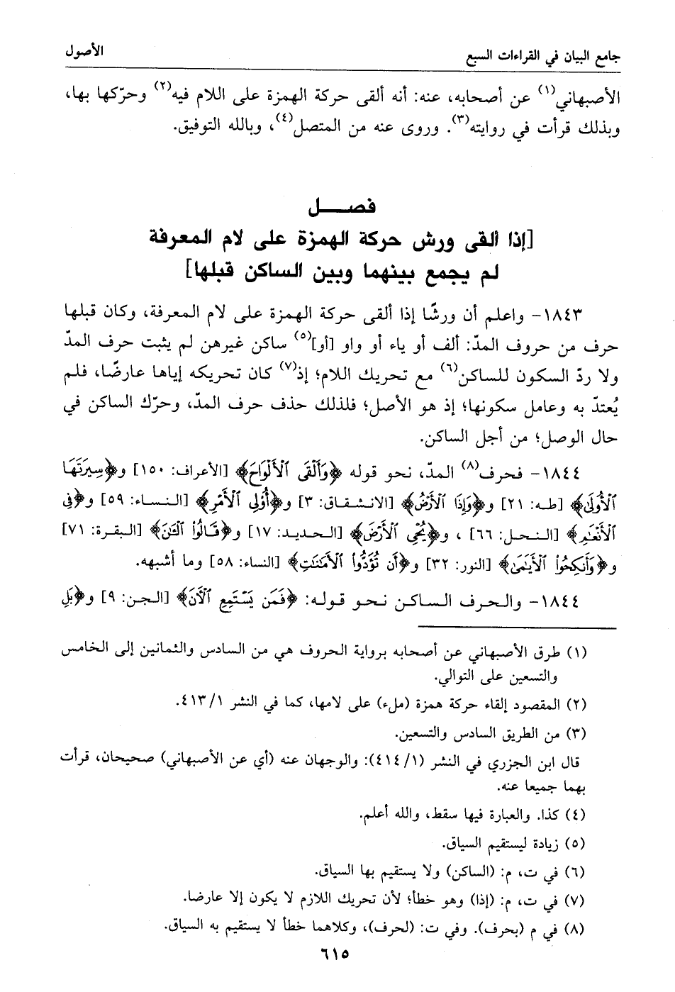 (2) المقصود إلقاء حركة همزة (ملء) على لامها، كما في النشر 1/ 413.