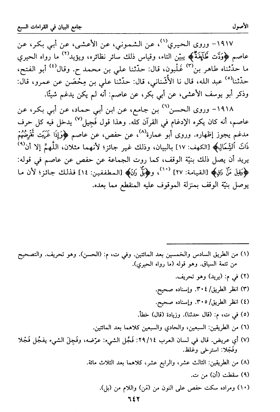 1917 - وروى الحيري «1»، عن الشموني، عن الأعشى، عن أبي بكر، عن عاصم ودّت طّآئفة يبيّن التاء، وقياس ذلك سائر نظائره، ويؤيد «2» ما رواه الحيري ما حدّثناه طاهر بن «3» غلبون، قال: حدّثنا علي بن محمد ح. وقال «4» أبو الفتح، حدّثنا «5» عبد الله، قال نا الأشناني، قال: حدّثنا علي بن محصن عن عمرو، قال: