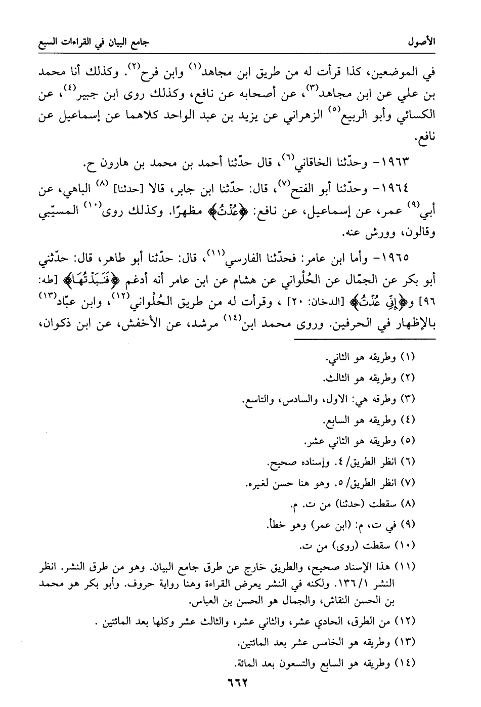 1964 - وحدّثنا أبو الفتح «7»، قال: حدّثنا ابن جابر، قالا [حدثنا] «8» الباهي، عن أبي «9» عمر، عن إسماعيل، عن نافع: عذت مظهرا. وكذلك روى «10» المسيّبي وقالون، وورش عنه.