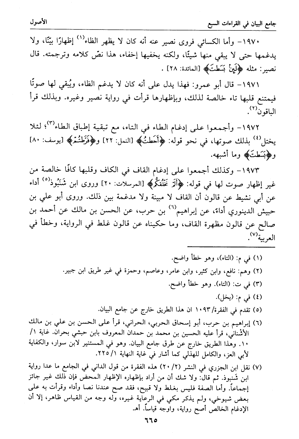 1971 - قال أبو عمرو: فهذا يدل على أنه كان لا يدغم الظاء، ويبقي لها صوتا فيمتنع قلبها تاء خالصة لذلك، وبإظهارها قرأت في رواية نصير وغيره. وبذلك قرأ الباقون «2».