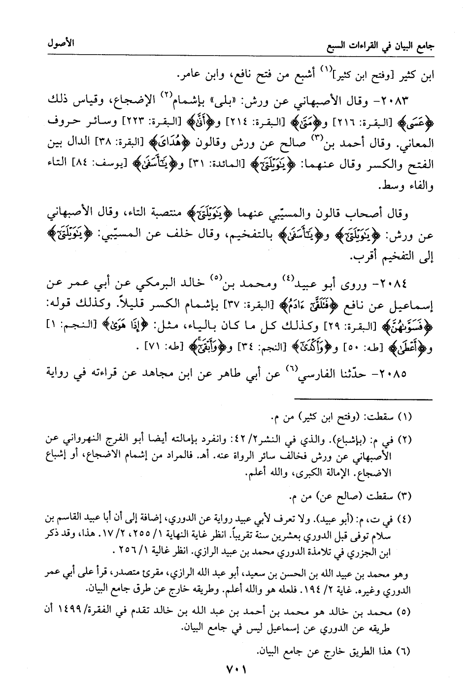 2085 - حدّثنا الفارسي «6» عن أبي طاهر عن ابن مجاهد عن قراءته في رواية