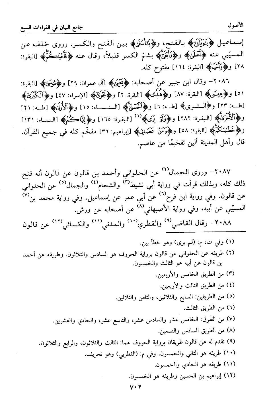 2088 - وقال القاضي «9» والقطري «10» والمدني «11» والكسائي «12» عن قالون