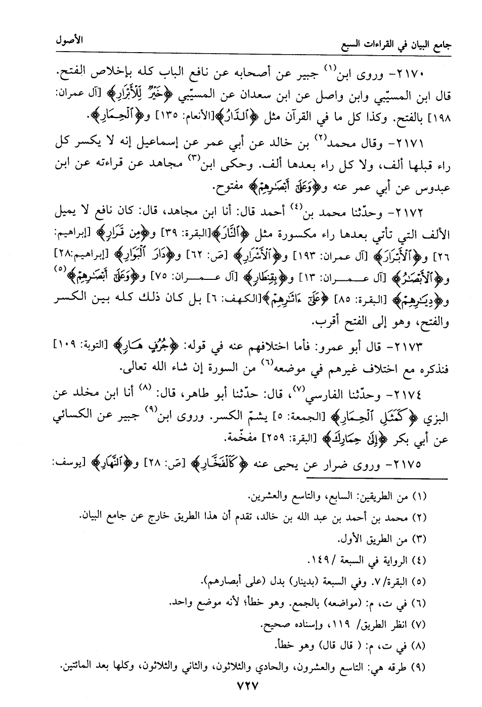 2170 - وروى ابن «1» جبير عن أصحابه عن نافع الباب كله بإخلاص الفتح.