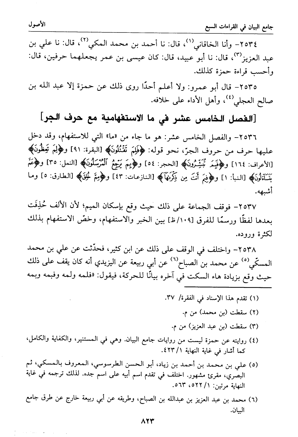 2535 - قال أبو عمرو: ولا أعلم أحدا روى ذلك عن حمزة إلا عبد الله بن صالح العجلي «4»، وأهل الأداء على خلافه.