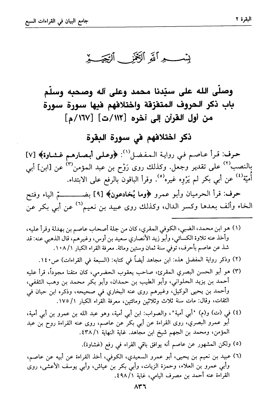 (5) ولكن المشهور عن عاصم أنه يوافق باقي القراء في رفع (غشاوة).