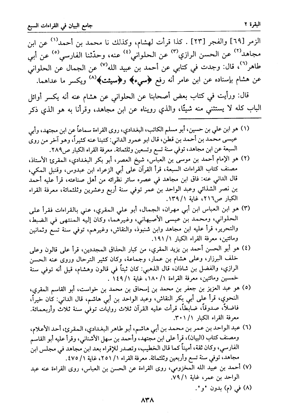 (2) هو الإمام أحمد بن موسى بن العباس، شيخ العصر، أبو بكر البغدادي، المقرئ الأستاذ، مصنف كتاب القراءات السبعة، قرأ القرآن على أبي الزعراء ابن عبدوس، وقنبل المكي، قال الداني عنه: فاق ابن مجاهد في عصره سائر نظرائه من أهل صناعته، قرأ عليه أحمد بن نصر الشذائي وعبد الواحد بن عمر توفي سنة أربع وعشرين وثلاثمائة، معرفة القراء الكبار ص 216، غاية 1/ 139.