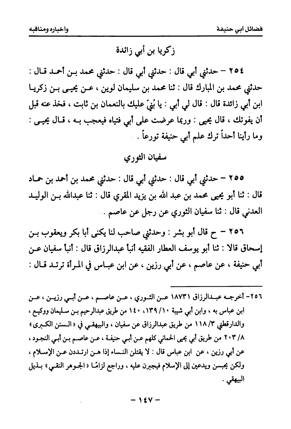 259 - حدثني أبي قال: حدثني أبي قال: سمعت أبا بشر الدولابي يقول: سمعت إبراهيم بن سعيد الجوهري يقول: سمعت عبيد الله بن موسى يقول: سمعت مسعر بن كدام يقول: رحم الله أبا حنيفة، إن كان لفقيهاً عالماً.