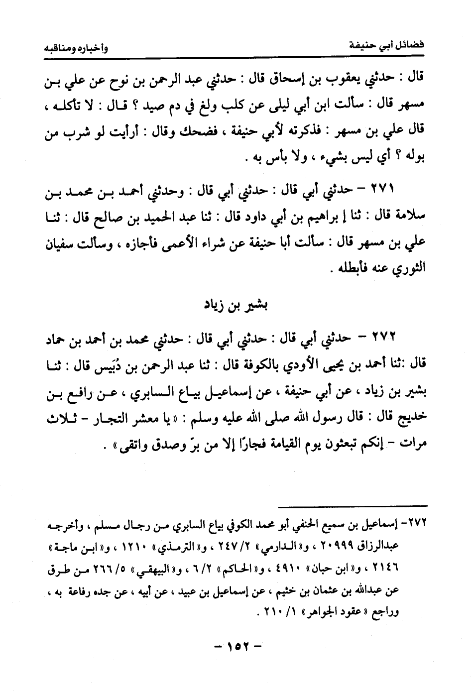275 - حدثني أبي قال: حدثني أبي قال: حدثني محمد بن أحمد بن علي البغدادي قال: ثنا عمرو بن يحيى بن الحرب الحبراني قال: ثنا المعافى بن #154# سليمان قال: ثنا القاسم بن معن، عن أبي حنيفة: أنه كان يقول: العنق كله مذبح.