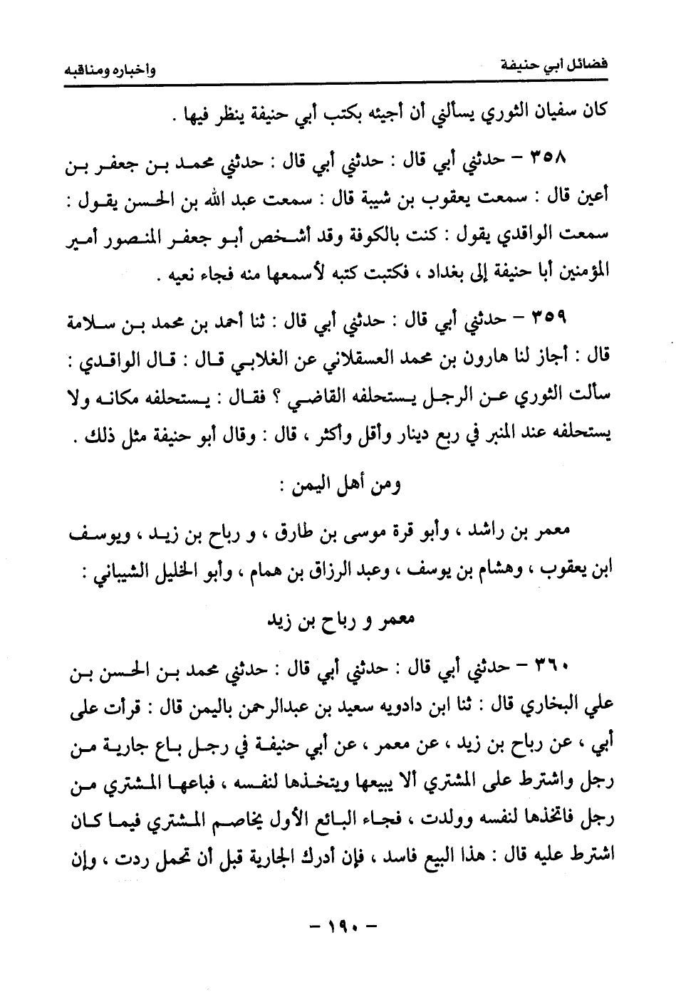 361 - حدثني أبي قال: حدثني أبي قال: حدثني محمد بن أحمد بن حماد قال: حدثني يعقوب بن إسحاق قال: حدثني أبي قال: ثنا عبد الرزاق قال: قال لي معمر في مسألة: سئل أبا حنيفة، وإنما أراد بهذا هل يوافقه أو يخالفه.