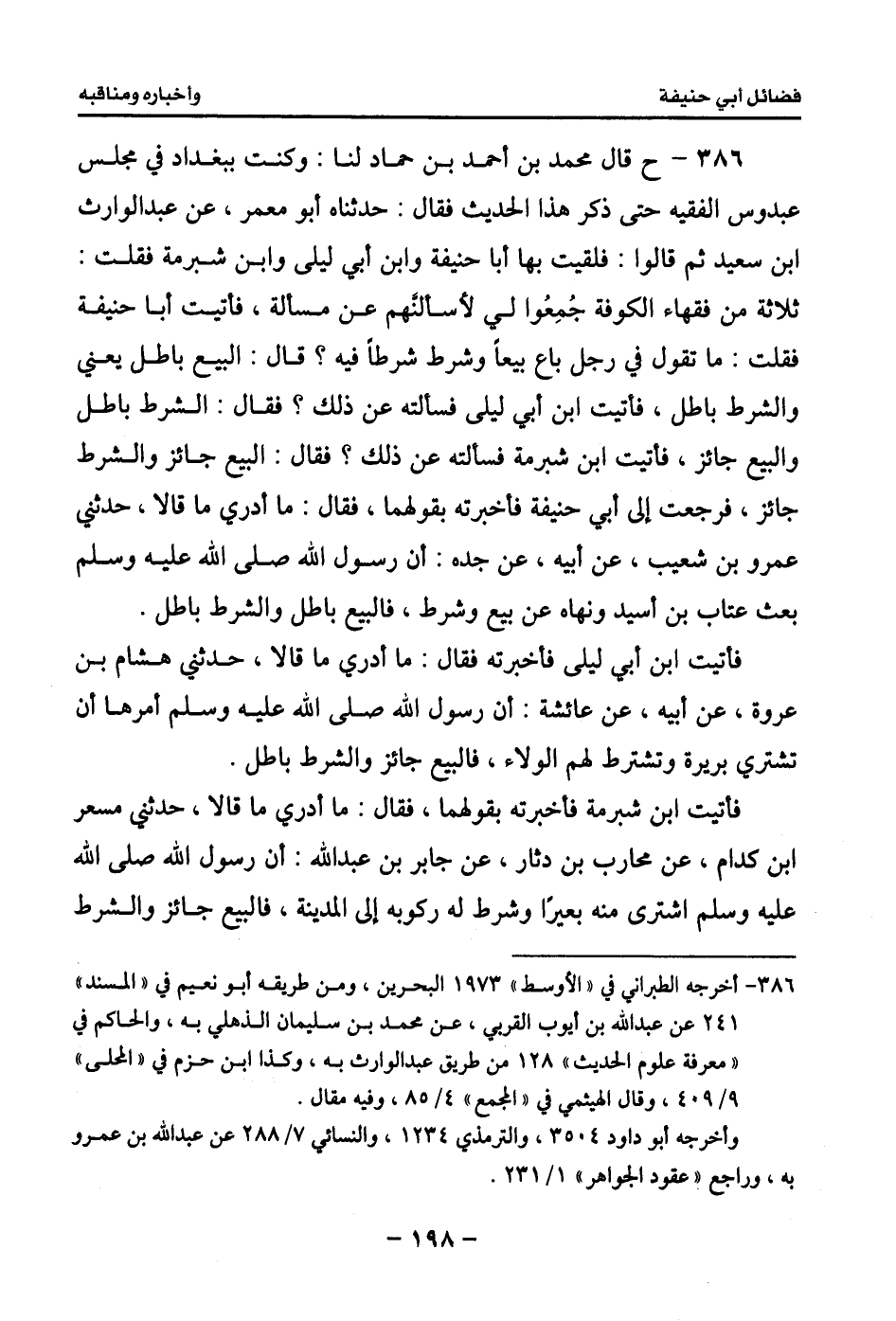388 - حدثني أبي قال: حدثني أبي قال: حدثني أبو بكر محمد بن جعفر بن أعين قال: ثنا يعقوب بن شيبة، عن علي بن المديني قال: كان يزيد ابن زريع إذا ذكر أبا حنيفة قال: هيهات! طارت بفتواه البغال الشهب.