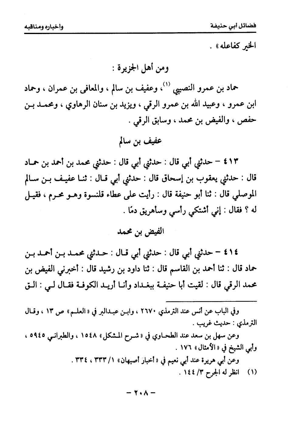 416 - حدثني أبي قال: حدثني أبي قال: في كتابي عن أبي جعفر أحمد ابن حماد زغبة أنا أشك في سماعه قال: أنبأ سعيد بن الحكم بن أبي مريم قال: أنبأ يحيى بن أيوب، عن أبي حنيفة، عن حماد، عن إبراهيم أنه قال فيمن قال لامرأته: اعتدي: إنها واحدة إلا أن يكون أراد أكثر من ذلك.