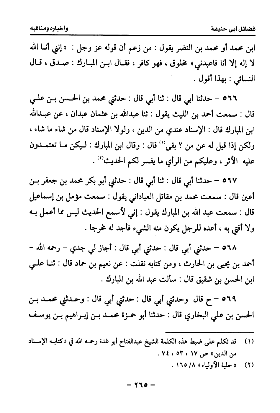 572 - حدثنا أبي قال: ثنا أبي قال: ثنا إسحاق بن إبراهيم بن يونس قال: ثنا أحمد بن عبد الرحمن عن محمد بن سهل التميمي، عن أبي صالح #267# الفراء، عن ابن المبارك قال: الحبر في الثوب خلوق العلماء.