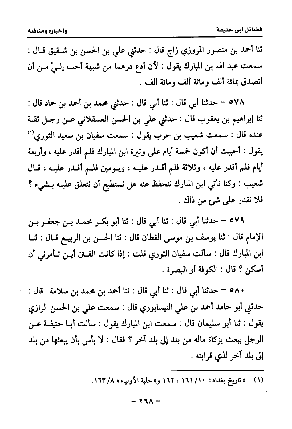 583 - حدثني أبي قال: ثنا أبي قال: حدثني محمد بن أحمد بن حماد قال: ثنا سليمان بن الربيع بن هشام النهدي قال: حدثني همام بن مسلم قال: ودع عبد الله بن المبارك رجل من كبار أهل مرو فقال: أودعك ببيت من شعر: