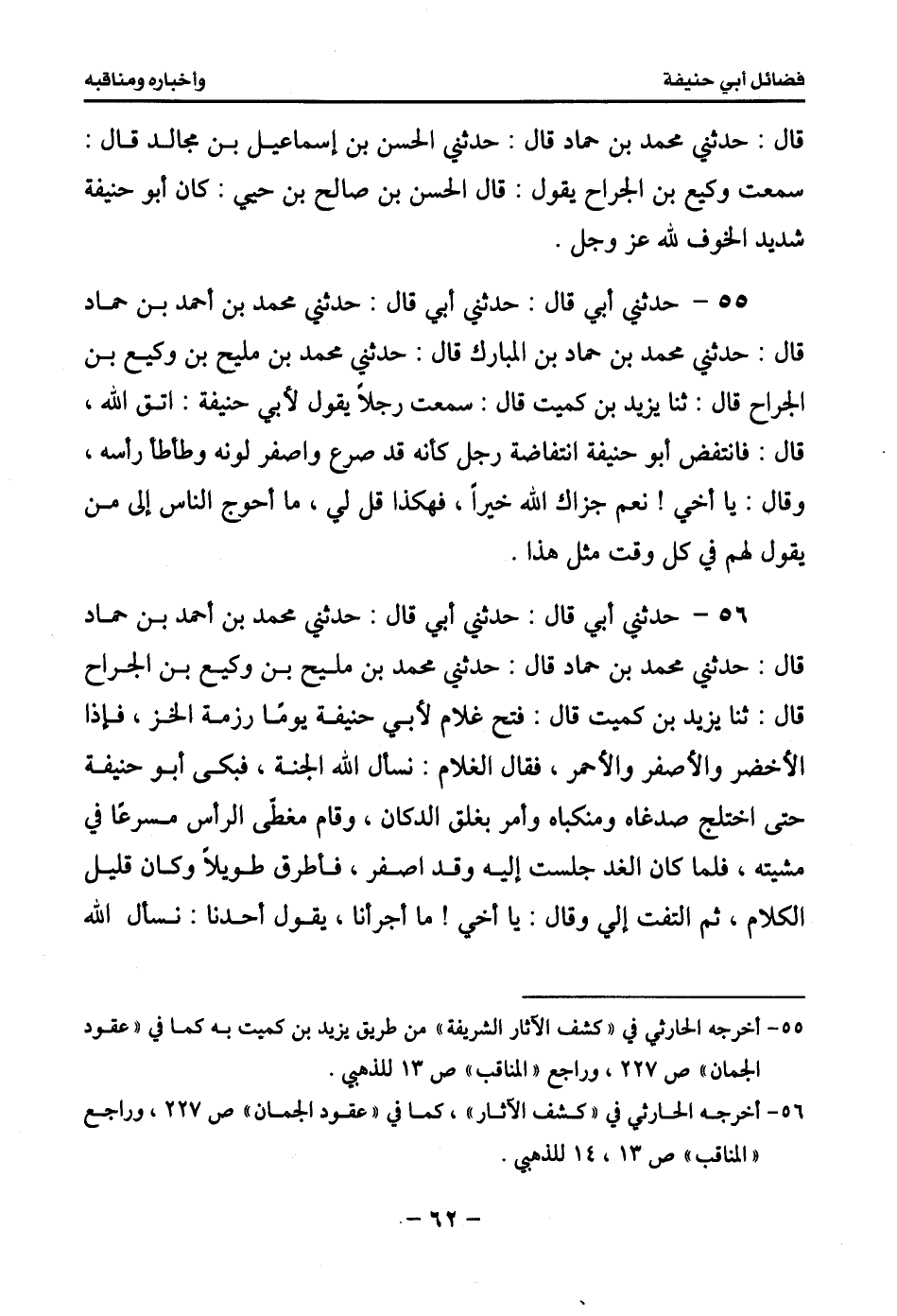 57 - حدثني أبي قال: حدثني أبي قال: حدثني محمد بن أحمد بن حماد قال: حدثني محمد بن المبارك المصيصي قال: ثنا الحسين بن إبراهيم قال: سمعت محمد بن فضيل يقول: كان أبو حنيفة إذا سئل عن المسألة قال: رب سلم رب سلم.