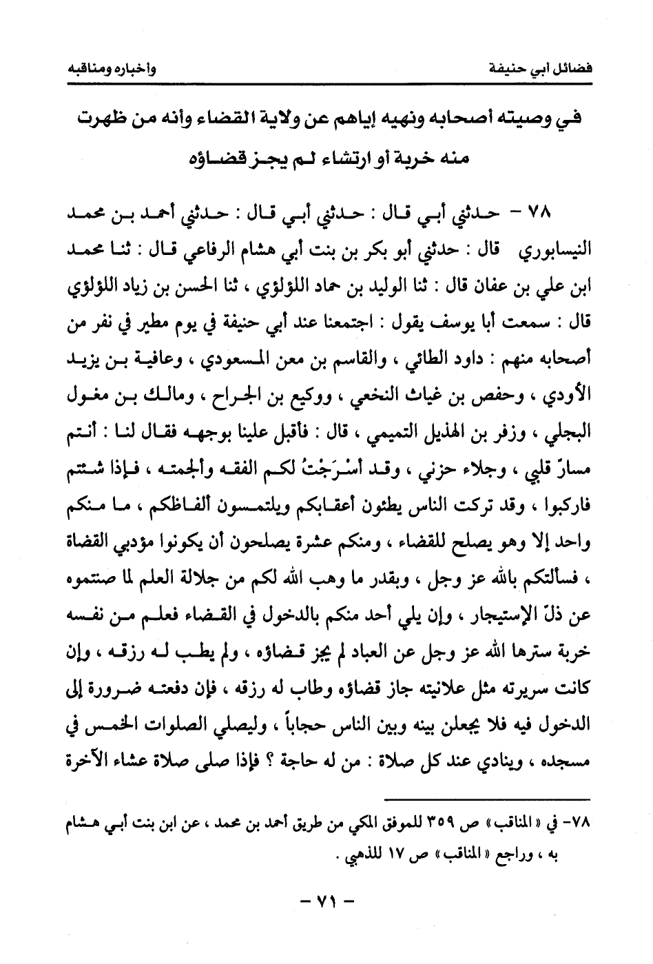 79 - حدثني أبي قال: حدثني أبي قال: حدثني إبراهيم بن حميد البصري الكلابزي قال: ثنا أحمد بن عمرو بن مهير الخصاف قال: حدثني أبي قال: كان الحسن بن زياد يقول: قال أبو حنيفة: إذا ارتشى القاضي فهو معزول وإن لم يعزل.