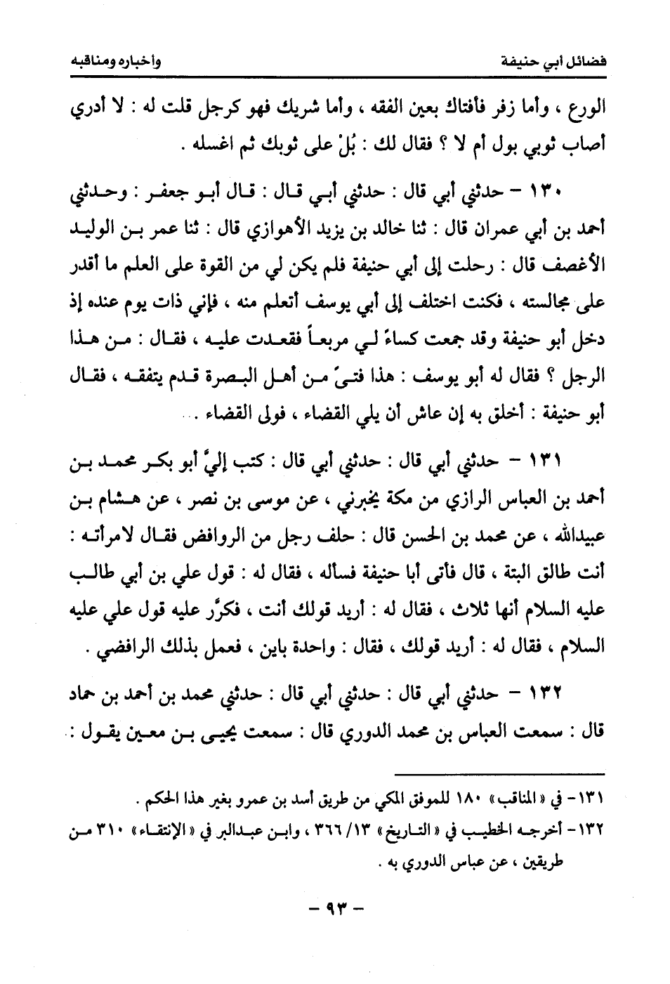 134 - حدثني أبي قال: حدثني أبي قال: حدثني محمد بن أحمد بن حماد قال: حدثني أحمد بن القاسم البرتي قال: حدثني الليث أبو نصر البلخي قال: سمعت الحسن بن جمعة قال: سمعت شداد بن حكيم يقول: سمعت عبد الله ابن المبارك يقول: