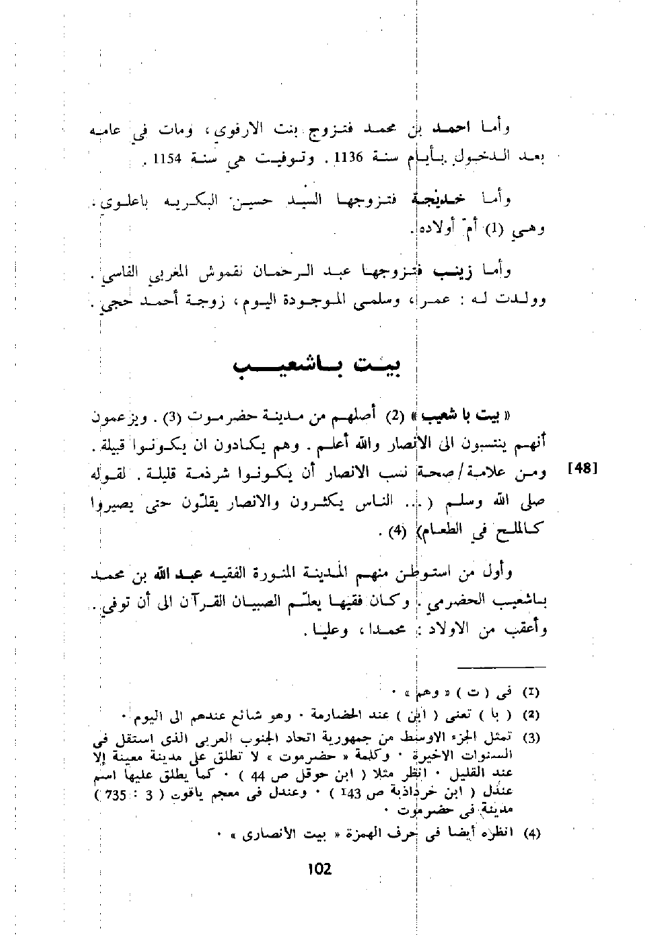 " بيت باشعيب " أصلهم من مدينة حضرموت. ويزعمون أنهم ينتسبون إلى الأنصار والله أعلم. وهم يكادون أن يكونوا قبيلة. ومن علامة صحة نسب الأنصار أن يكونوا شرذمة قليلة. لقوله صلى الله وسلم " ... الناس يكثرون والأنصار يقلون حتى يصيروا كالملح في الطعام ".