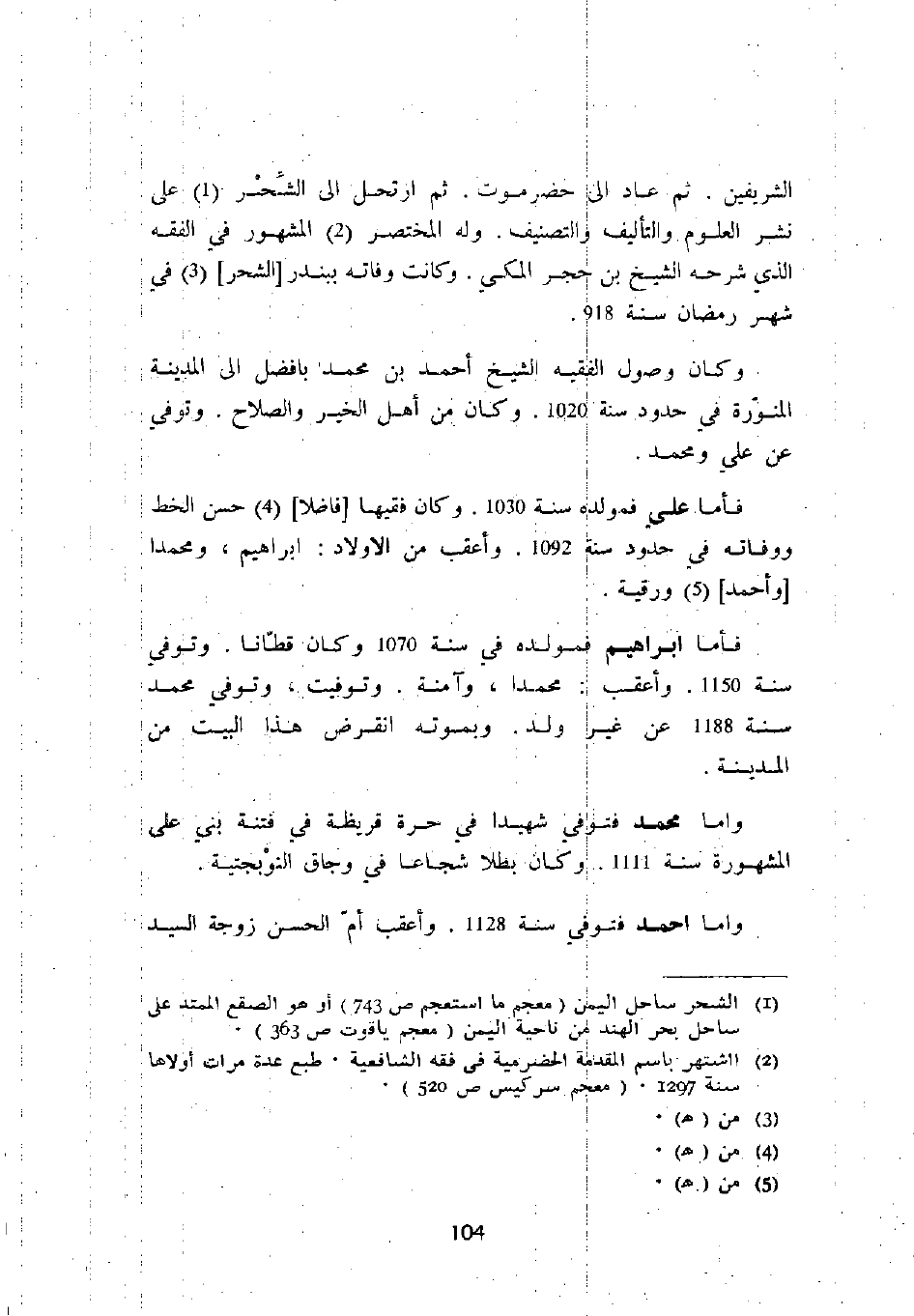 الشريفين. ثم عاد إلى حضرموت. ثم ارتحل إلى الشحر على نشر العلوم والتأليف والتصنيف. وله المختصر المشهور في الفقه الذي شرحه الشيخ بن حجر المكي. وكانت وفاته ببندر " الشحر " في شهر رمضان سنة 918.