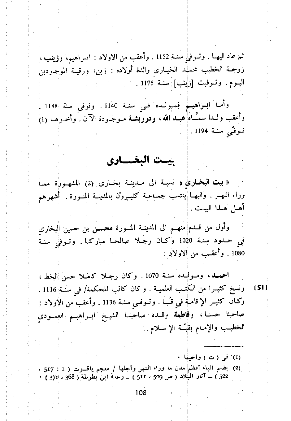 " بيت البخاري " نسبة إلى مدينة بخارى المشهورة مما وراء النهر. وإليها ينتسب جماعة كثيرون بالمدينة المنورة. أشهرهم أهل هذا البيت.