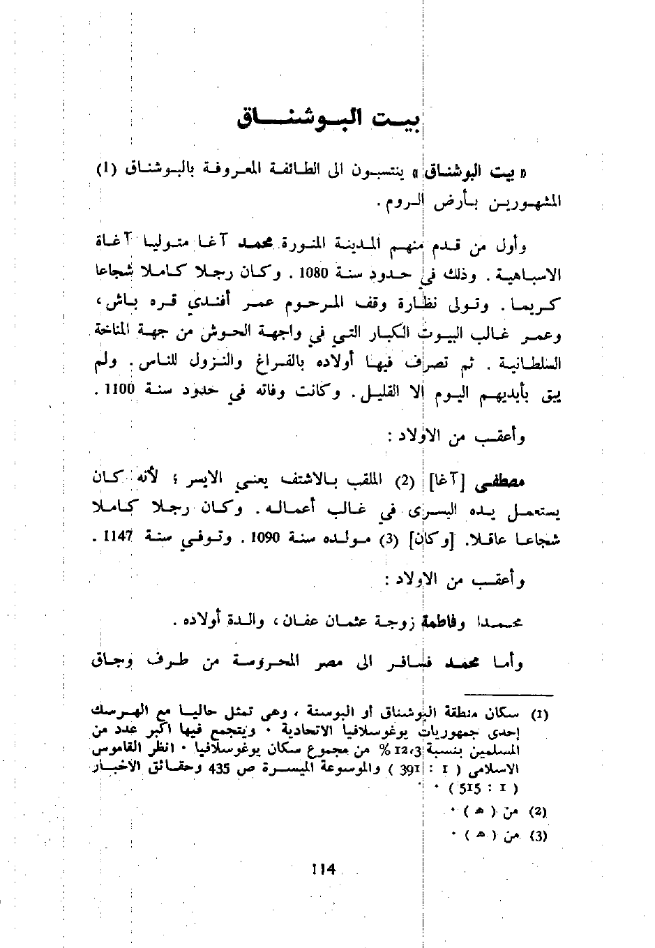 " بيت البوشناق " ينتسبون إلى الطائفة المعروفة بالبوشناق المشهورين بأرض الروم.
