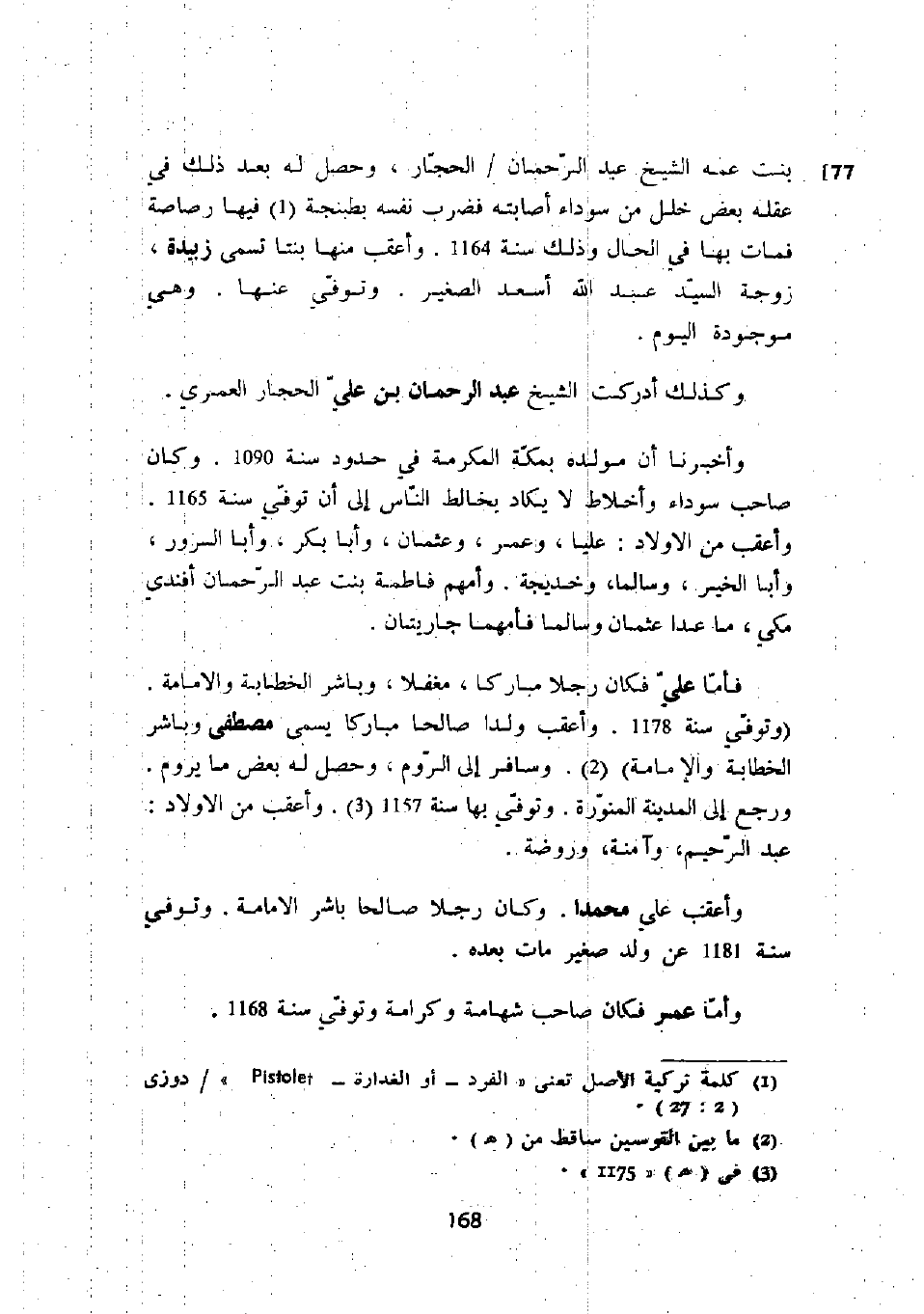 وأما عمر فكان صاحب شهامة وكرامة وتوفي سنة 1168.