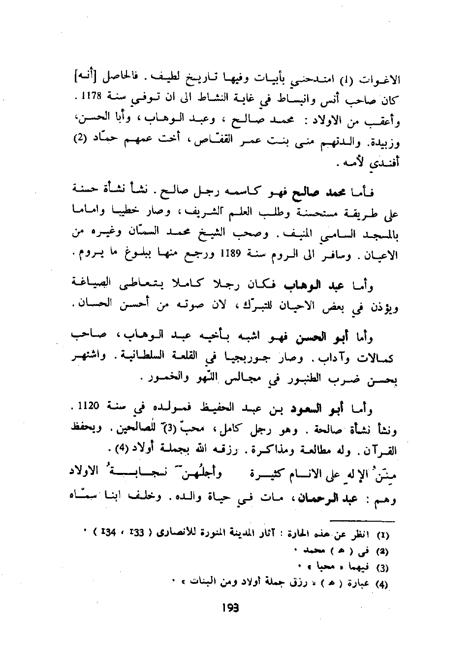 وأما عبد الوهاب فكان رجلاً كاملاً يتعاطى الصياغة ويؤذن في بعض الأحيان للتبرك لأن صوت من أحسن الحسان.