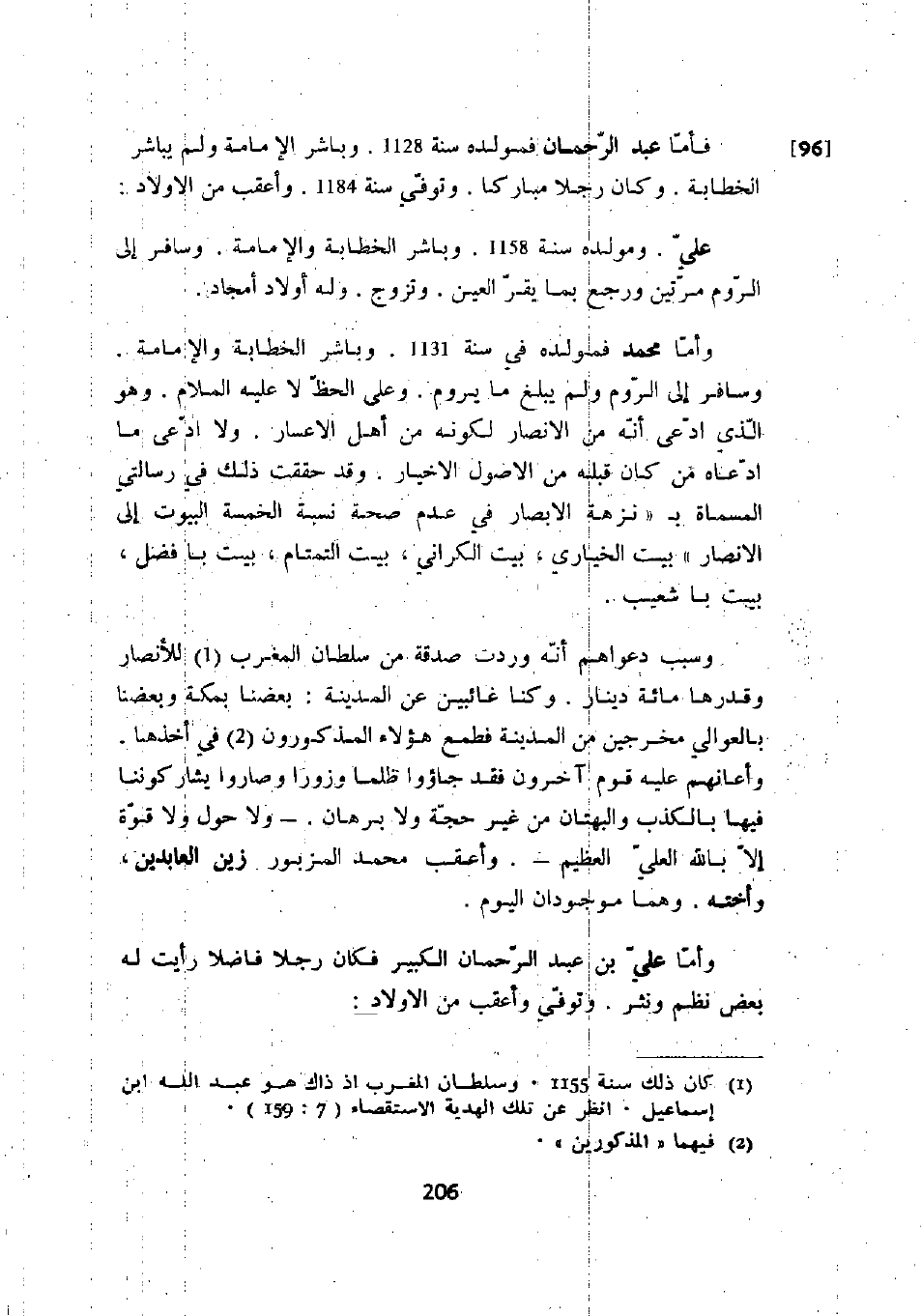 فأما عبد الرحمان فمولده سنة 1128. وباشر الإمامة ولم يباشر الخطابة. وكان رجلاً مباركاً. وتوفي سنة 1184. وأعقب من الأولاد: علي. ومولده سنة 1158. وباشر الخطابة والإمامة. وسافر إلى الروم مرتين ورجع بما يقر العين. وتزوج. وله أولاد أمجاد.