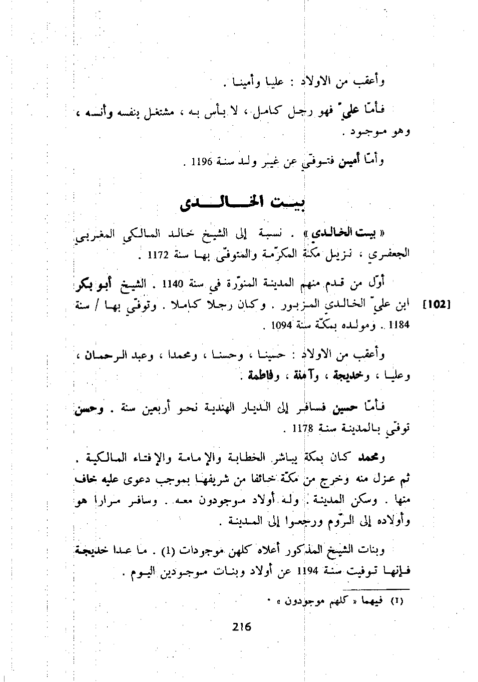 وبنات الشيخ المذكور أعلاه كلهن موجودات. ما عدا خديجة فإنها توفيت سنة 1194 عن أولاد وبنات موجودين اليوم.