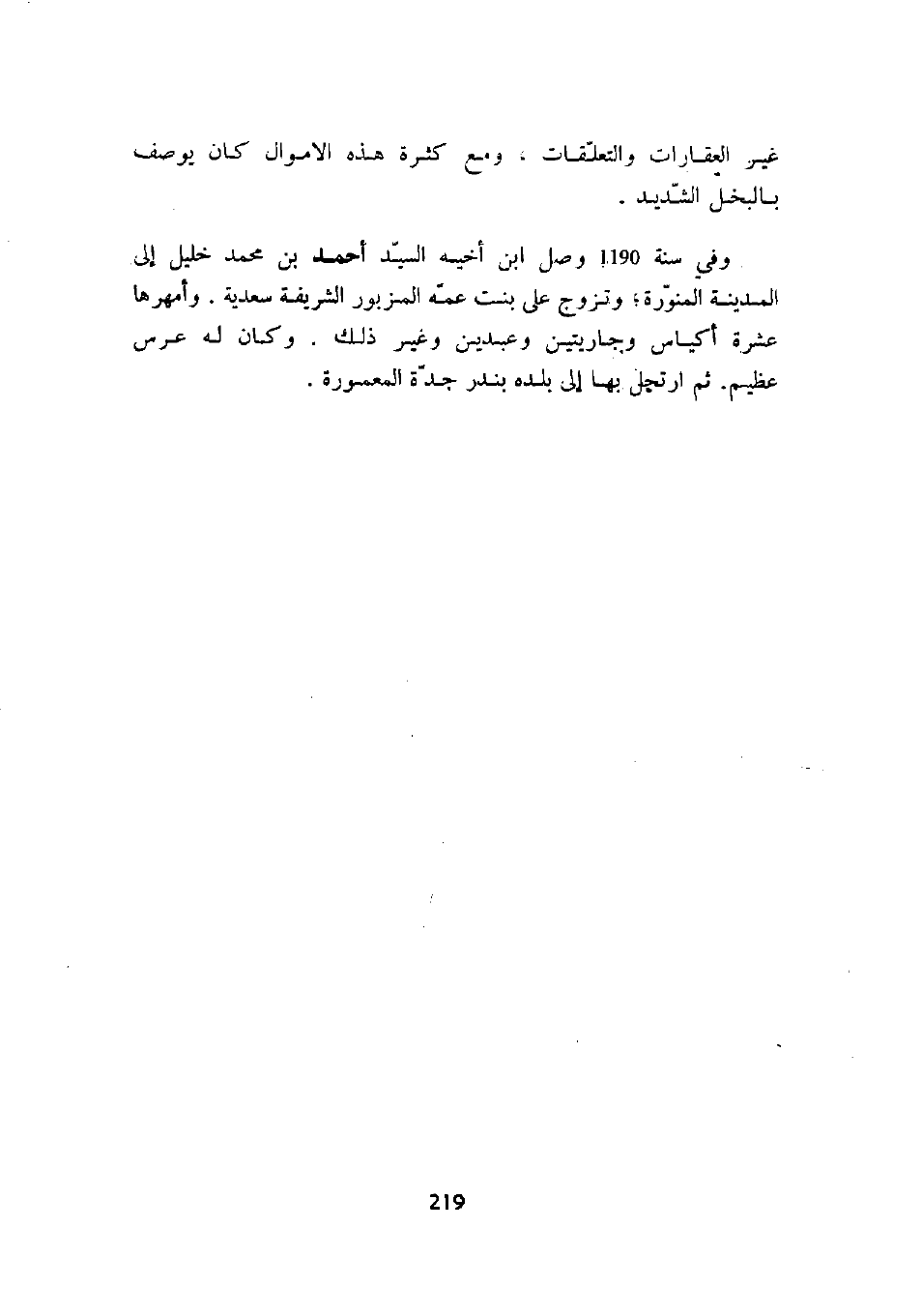 وفي سنة 1190 وصل ابن أخيه السيد أحمد بن محمد خليل إلى المدينة المنورة؛ وتزوج على بنت عمه المزبور الشريفة السعدية. وأمهرها عشرة أكياس وجاريتين وعبدين وغير ذلك. وكان له عرس عظيم. ثم ارتحل بها إلى بلدة بندر جدة المعمورة.