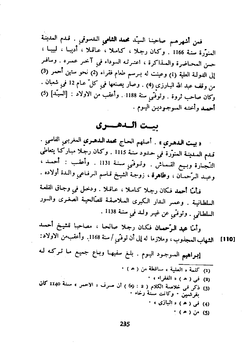 " بيت الدهري ". أصلهم الحاج محمد الدهري المغربي الفاسي. قدم المدينة المنورة في حدود سنة 1115. وكان رجلاً مباركاً يتعاطى التجارة وبيع القماش. وتوفي سنة 1131. وأعقب: أحمد، وعبد الرحمان، وطاهرة، زوجة الشيخ قاسم الرفاعي والدة أولاده.