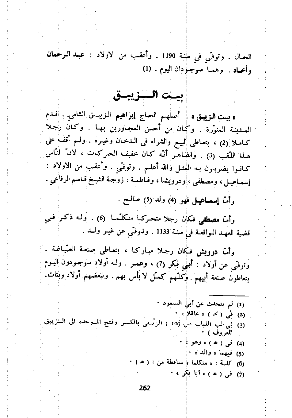 وأما مصطفى فكان رجلاً متحركاً متكلماً. وله ذكر في قضية العهد الواقعة في سنة 1133. وتوفي عن غير ولد.