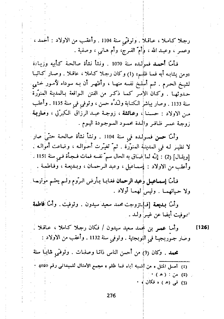 رجلاً كاملاً عاقلاً. وتوفي سنة 1104. وأعقب من الأولاد: أحمد، وعمر، وعبد الله، وأم الفرج، وأم هانئ، وصفية.
