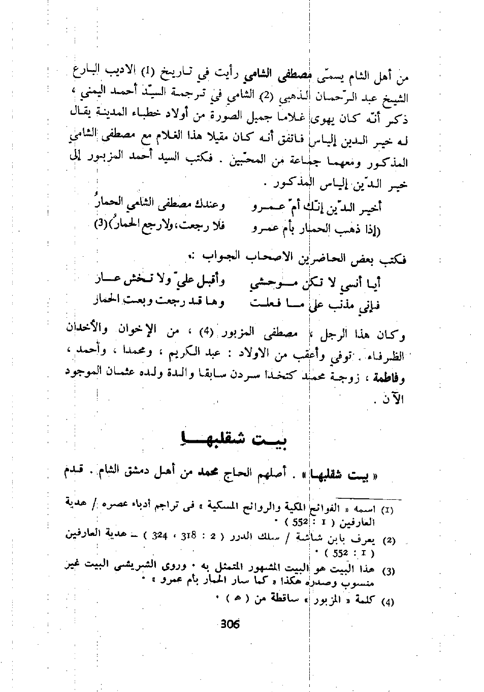 " بيت شقلبها ". أصلهم الحاج محمد من أهل دمشق الشام. قدم
