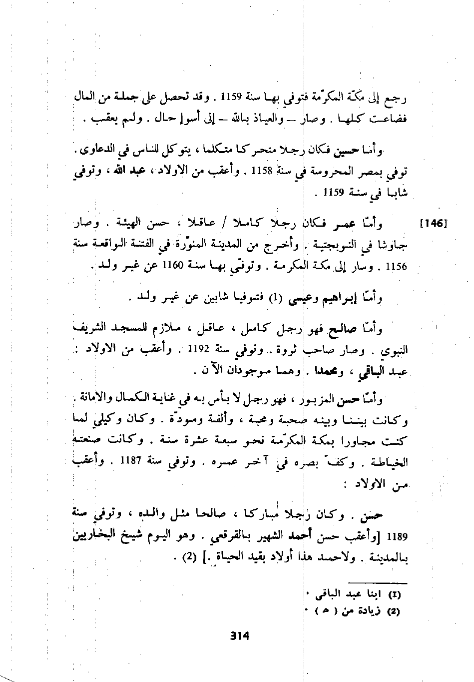 وأما صالح فهو رجل كامل، عاقل، ملازم للمسجد الشريف النبوي. وصار صاحب ثروة. وتوفي سنة 1192. وأعقب من الأولاد: عبد الباقي، ومحمداً. وهما موجودان الآن.