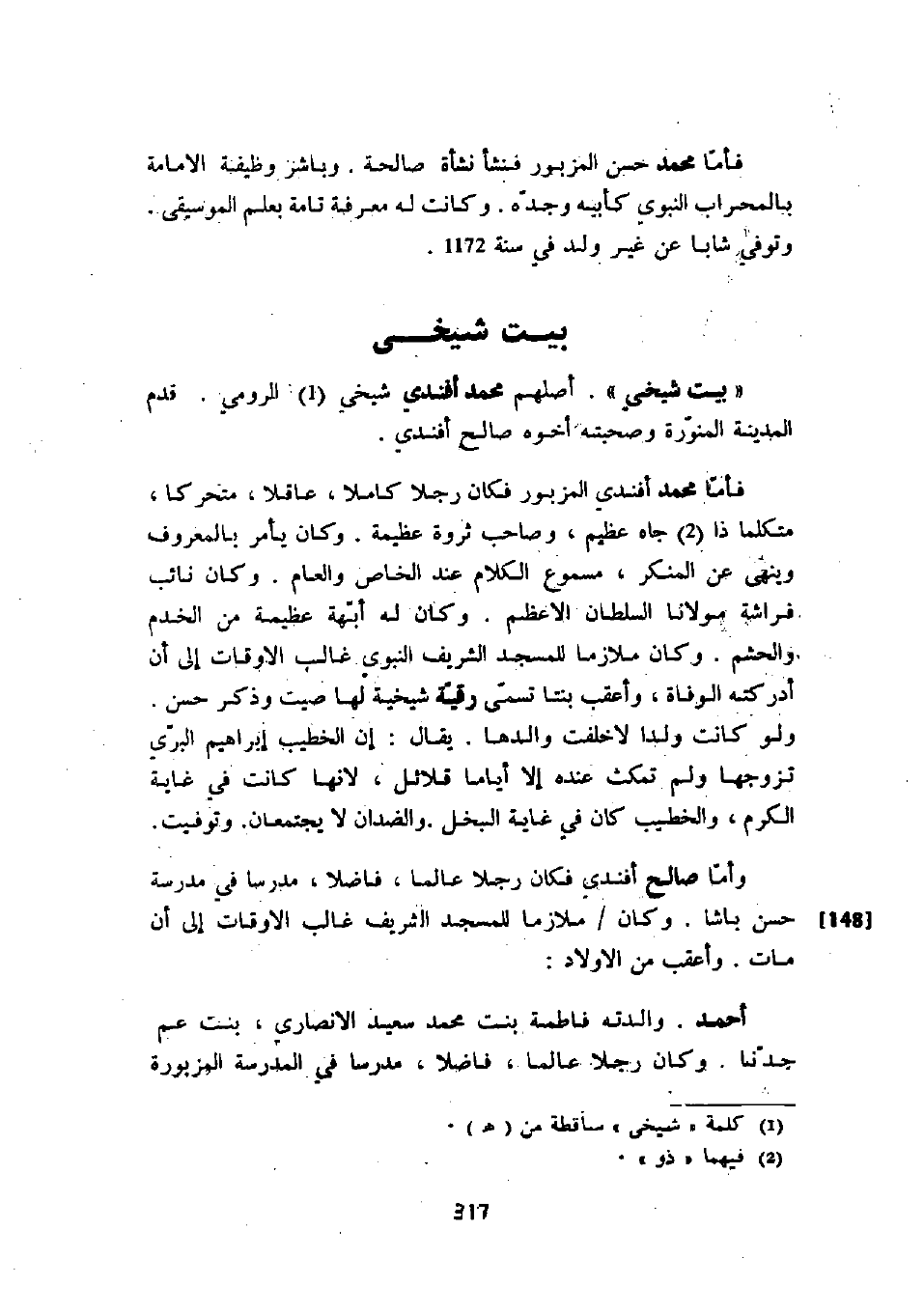فأما محمد حسن المزبور فنشأ نشأة صالحة. وباشر وظيفة الإمامة بالمحراب النبوي كأبيه وجده. وكانت له معرفة تامة بعلم الموسيقى. توفي شاباً عن غير ولد في سنة 1172.