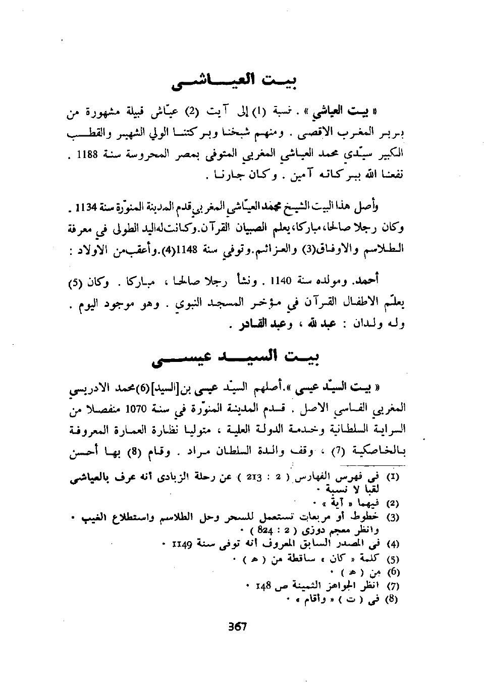 " بيت عياشي ". نسبة إلى آيت عياش قبيلة مشهورة من بربر المغرب الأقصى. ومنهم شيخنا وبركتنا الولي الشهير والقطب الكبير سيدي محمد العياشي المغربي المتوفى بمصر المحروسة سنة 1188. نفعنا الله ببركاته آمين. وكان جارنا.
