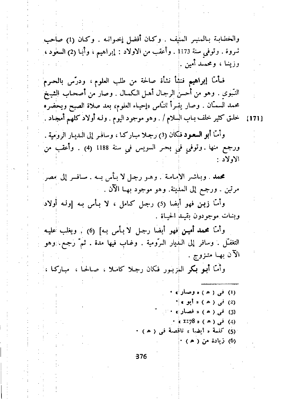 والخطابة بالمنبر المنيف. وكان أفضل إخوانه. وكان صاحب ثروة. وتوفي سنة 1173. وأعقب من الأولاد: إبراهيم، وأبا السعود، وزيناً، ومحمد أمين.