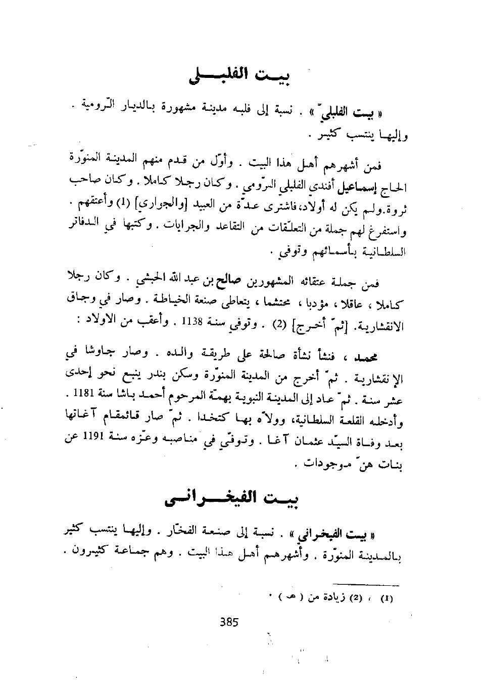 " بيت الفلبلي ". نسبة إلى فلبة مدينة مشهورة بالديار الرومية وإليها ينتسب كثير.