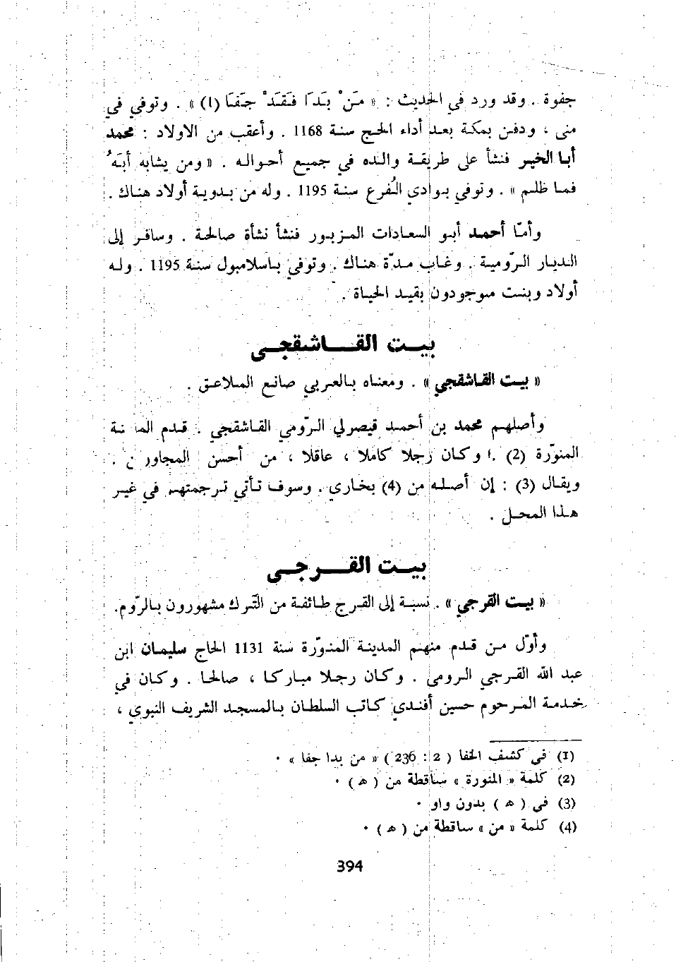 وأصلهم محمد بن أحمد قيصرلي الرومي القاشقجي. قدم المدينة المنورة. وكان رجلاً كاملاً، عاقلاً، من أحسن المجاورين. ويقال: إن أصله من بخارى. وسوف تأتي ترجمتهم في غير هذا المحل.