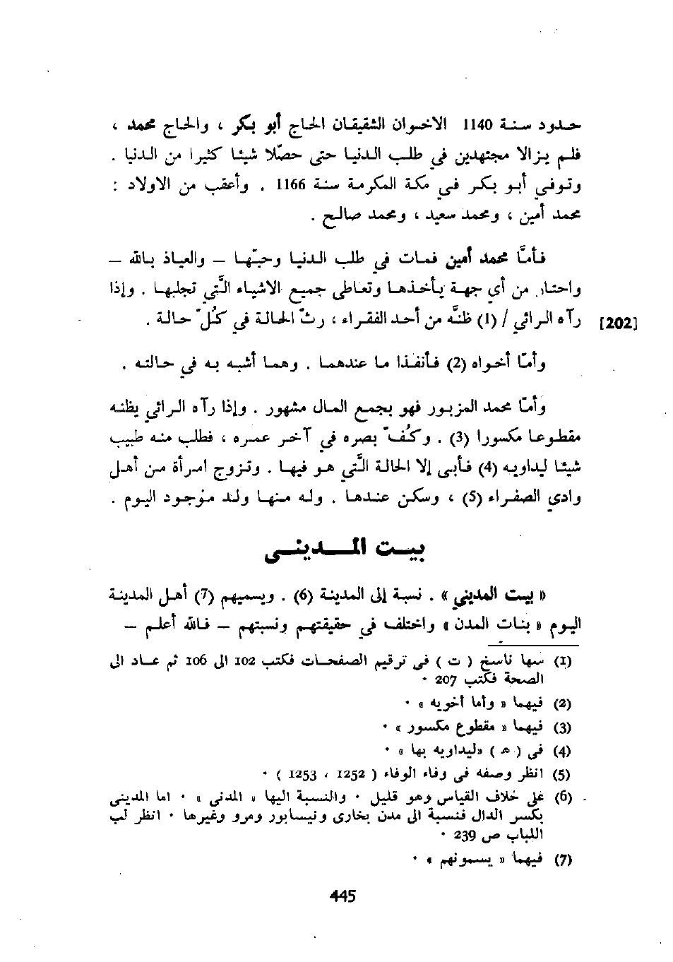 " بيت المديني ". نسبة إلى المدينة. ويسميهم أهل المدينة اليوم " بنات المدن " واختلف في حقيقتهم ونسبتهم - فالله أعلم -