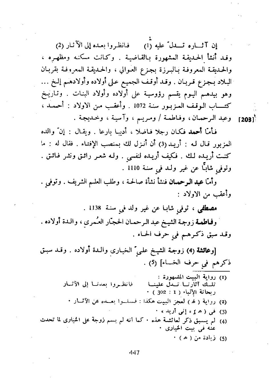 " وعائشة زوجة الشيخ علي الخياري والدة أولاده. وقد سبق ذكرهم في حرف الخاء ".