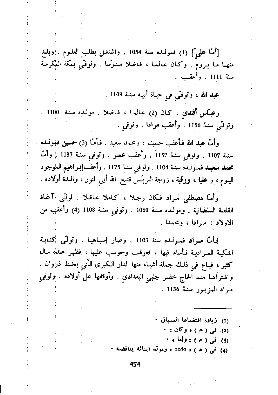 وعباس أفندي. وكان عالماً، فاضلاً. مولده سنة 1100. وتوفي سنة 1156. وأعقب مراداً. وتوفي.
