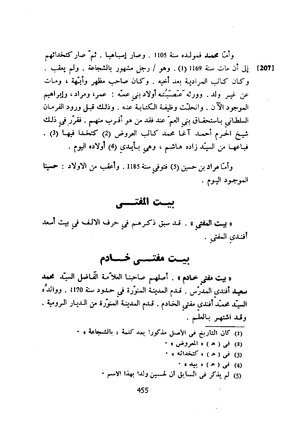 " بيت مفتي خادم ". أصلهم صاحبنا العلامة الفاضل السيد محمد سعيد أفندي المدرس. قدم المدينة المنورة في حدود سنة 1170. ووالده السيد محمد أفندي مفتي الخادم. قدم المدينة المنورة من الديار الرومية. وقد اشتهر بالعلم.