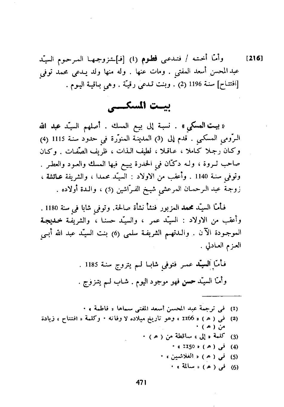 فأما السيد عمر فتوفي شاباً لم يتزوج سنة 1185.