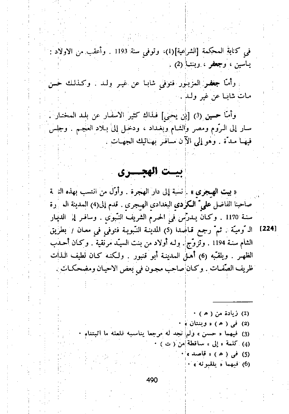 " بيت الهجري ". نسبة إلى دار الهجرة. وأول من انتسب بهذه النسبة صاحبنا الفاضل علي الكردي البغدادي الهجري. قدم إلى المدينة المنورة سنة 1170. وكان يدرس في الحرم الشريف النبوي. وسافر إلى الديار الرومية. ثم رجع قاصداً المدينة النبوية فتوفي في معان بطريق الشام سنة 1194. وتزوج. وله أولاد من بنت السيد مرنقية. وكان أحدب الظهر. ويلقبه أهل المدينة أبو قنبور. ولكنه كان لطيف الذات ظريف الصفات. وكان صاحب مجون في بعض الأحيان ومضحكات.