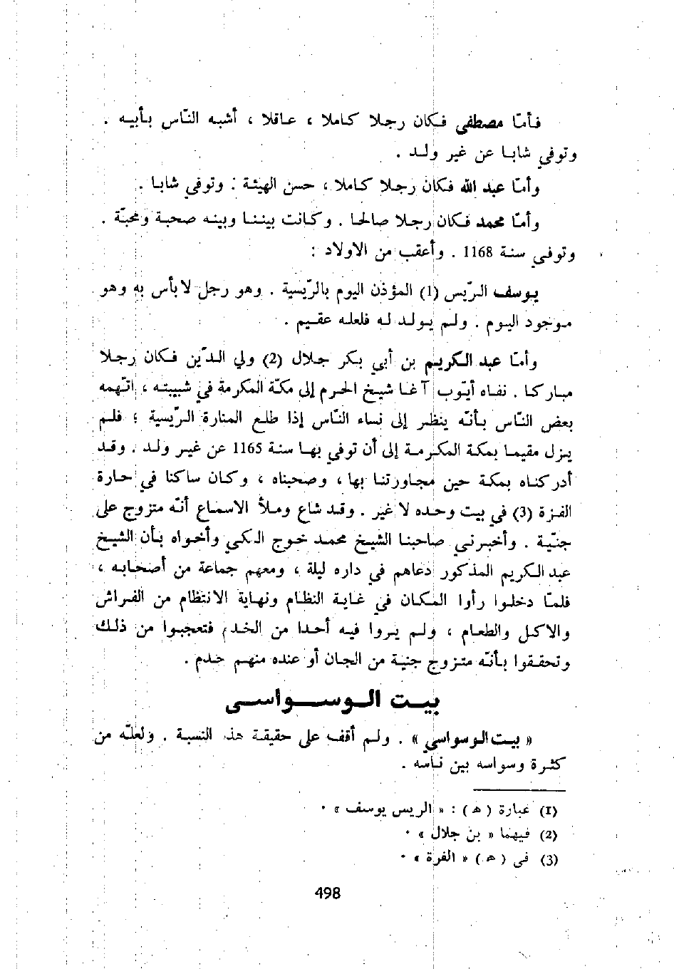 " بيت الوسواسي ". ولم أقف على حقيقة هذه النسبة. ولعله من كثرة وسواسه بين ناسه.